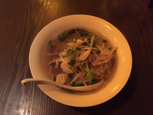 ランチメニューには数種類ありましたが、私は辛いものがダメなので「辛くないのは?」と尋ねると、即座に「タイヌードル」を薦められました。確かに、メニューには「辛くないあっさりスープ」と書かれていました。これが850円、日本では妥当な金額です。